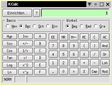 kcalcEin wissenschaftlicher Taschenrechner (vgl. "calculator")...