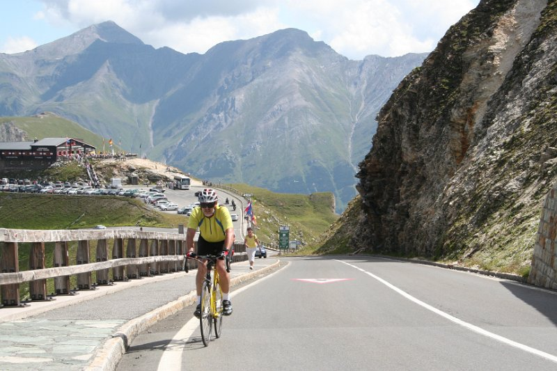 | 10. August 2010 Großglockner HochalpenstraßePasshöhe: 2428 m (Fuscher Törl), 2504 m (Hochtor) Von Fusch zunächst mit geringem Anstieg, dann bergauf zur Mautstation Ferleiten (1 151 m). Neben der Mautstelle besteht die Möglichkeit zur Zeitnehmung (mit Ziel Fuscher Törl) – für Hobbyfahrer genügt vermutlich die Ablesegenauigkeit der Pulsuhr ;-). Jetzt sich beim durchaus herausfordernden Anstieg bis zum Piffkar (1 633 m) nicht verausgaben, sondern schon einige schöne Ausblicke genießen. Anschließend ist die Steigung etwas geringer und geübte Fahrer werden sich hier etwas „ausrasten“, bevor es die vielen Kehren zum Fuscher Törl hinauf geht. Sehr schöne Ausblicke, auch auf die wunderschöne Anlage der Straße. Vermutlich werden alle Fahrer beim Fuscher Törl ihre erste Rast einlegen und den Anblick der Bergwelt genießen. Die Auffahrt zur Edelweißspitze wird viele motivieren, oder auch die Weiterfahrt zum höchsten Punkt der Glocknerstraße, zum Hochtor. WikiPedia:Großglockner-Hochalpenstraße (abg. am 10. Aug. 2010) |