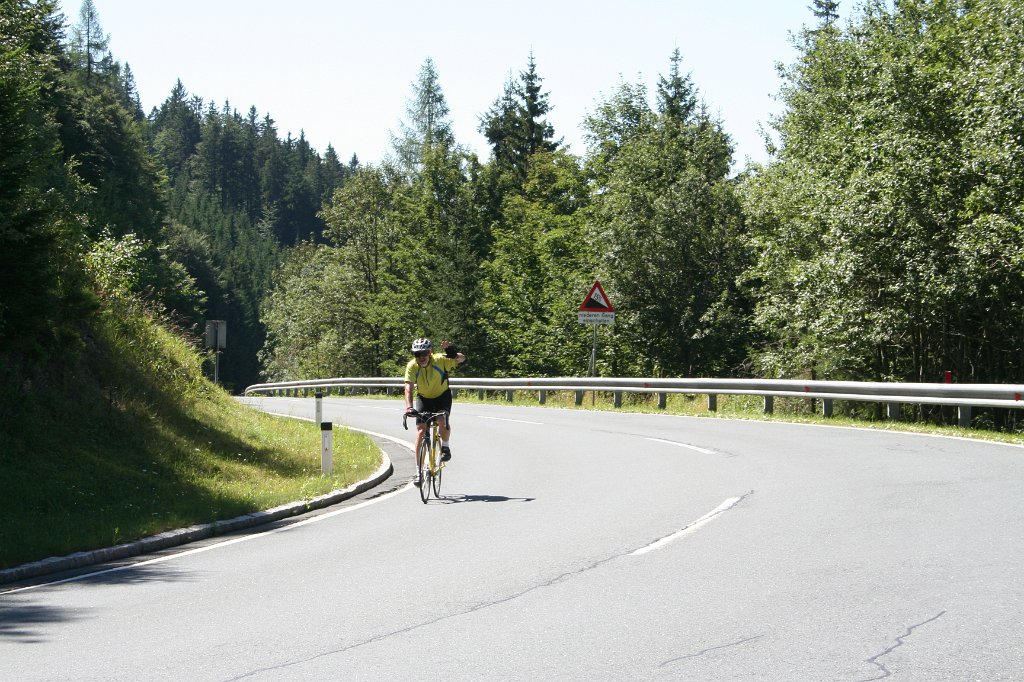 | 11. August 2011 SobothPasshöhe: 1349 m Ausgangspunkt: Lavamünd (ca. 350 m) Route: Lavamünd – Soboth – Eibiswald (etwa 39 km). Intensive Anstiege auf der Kärntner Seite der Soboth (bis 15%), etwa 10 km bis zum höchsten Punkt; anschließend auf sehr angenehmer Fahrbahn eine leichte Abfahrt bis Eibiswald (max. 13 % Gefälle) mit kurzen Steigungen.