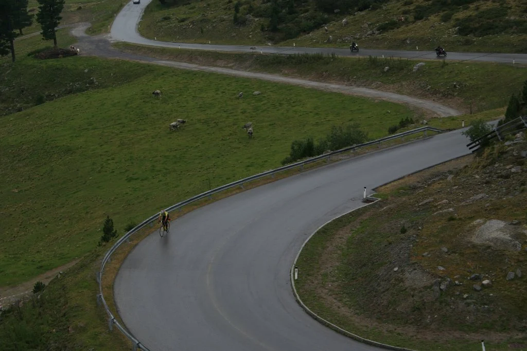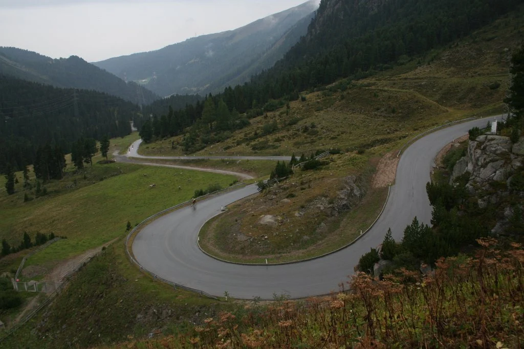 | 1. September 2011 KühtaisattelPasshöhe: 2017 m Von Ötz (812 m) – ziemlich stark ansteigend – die Straße nach Kühtai hoch (bis zu 16 % Steigung). Die Straße ist bis Ochsengarten in recht gutem Zustand, dann mit mäßig gutem Straßenbelag. Sechs wunderschöne Kehren etwa zwei Kilometer vor Ochsengarten und eine schöne Auffahrt vor dem Speicher Längental. Vorsicht in den Lawinen / Steinschlagverbauten: In extrem geringem Sicherheitsabstand vorbeifahrenden PKW drängen den Radfahrer gegen die Randsteine – STURZGEFAHR!!!