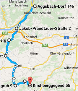 | 28. August 2014 Aggsbach – Melk – Hiesberg – Texing – Luft (Kirchberg)Endlich ein Tag zum Radfahren! Über den Donauradweg nach Melk, durch die Stadt nach Rosenfeld am Hiesberg, dann nach St. Leonhard, Mank, Texing und in einigen – wunderschönen – Kehren zum höchsten Punkt der Passstraße nach Kirchberg a.d. Pielach (ca 48 km, 900 m nach oben ;-)).