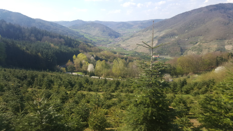 Blick von km 3.2 in den Spitzer Graben (nach den Weingärten und Obstbäumen sind wir hier schon bei den Christbaumkulturen am Jauerling). |
