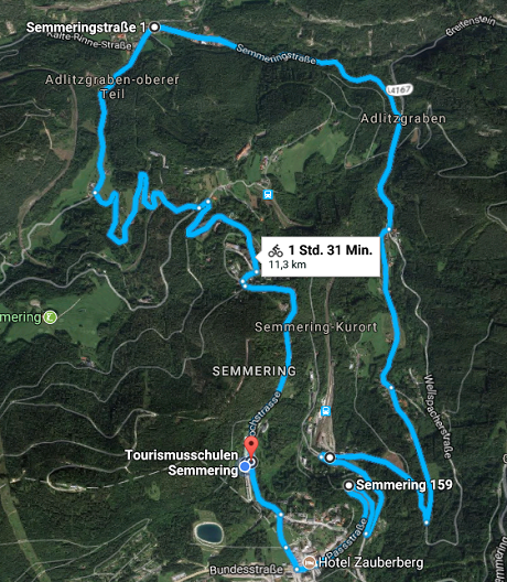 | 27. Juni 2017 Radfahren am SemmeringKleine „Runden“ am Abend … zum Beispiel (11 km, 440 m down & up).