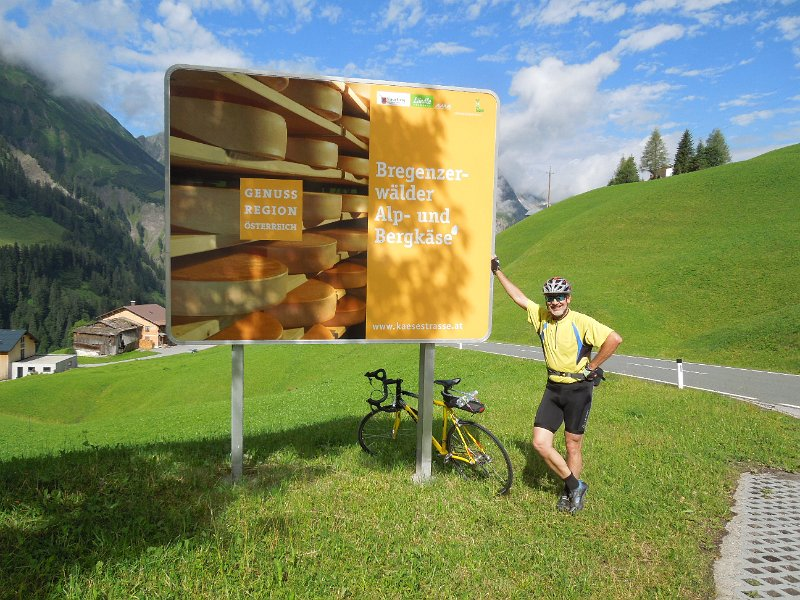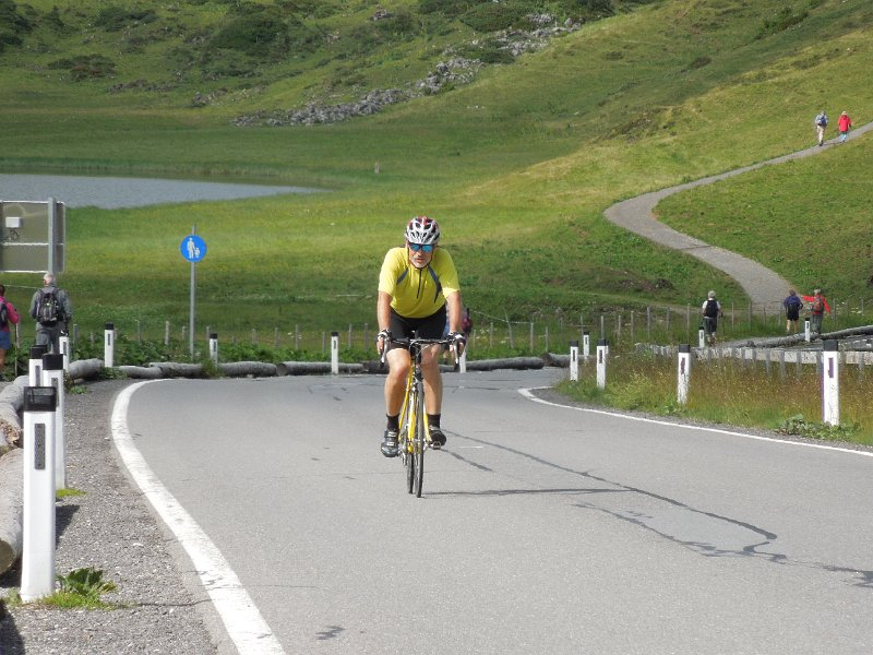 | 12. Juli 2017 Hochtannbergpass (1675 m)Route: Von Schoppernau (850 m) die Bregenzerwaldstraße hoch bis zur Passhöhe (ca 14 km, 825 m up). Empfehlenswert! Die Auffahrt von Westen über viele Kehren mit wunderbaren Ausblicken und über Talbrücken mit atemberaubenden Blicken nach unten.