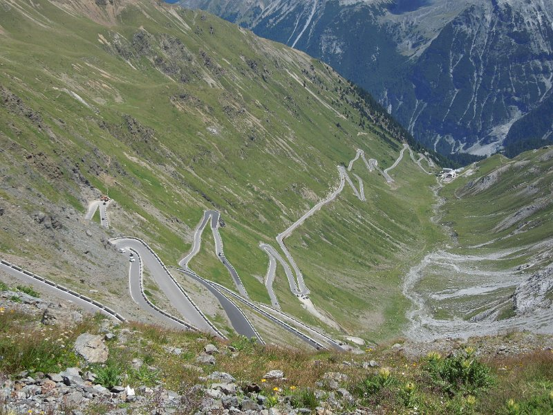 | 17. Juli 2017 Stilfser Joch, SüdtirolVon Prad am Stilfserjoch (915 m) auf der Nordost-Auffahrt in 48 Kehren 25 km weit zur Passhöhe (2757 m). Sehr schöne Aussichten zur Ortlergruppe!