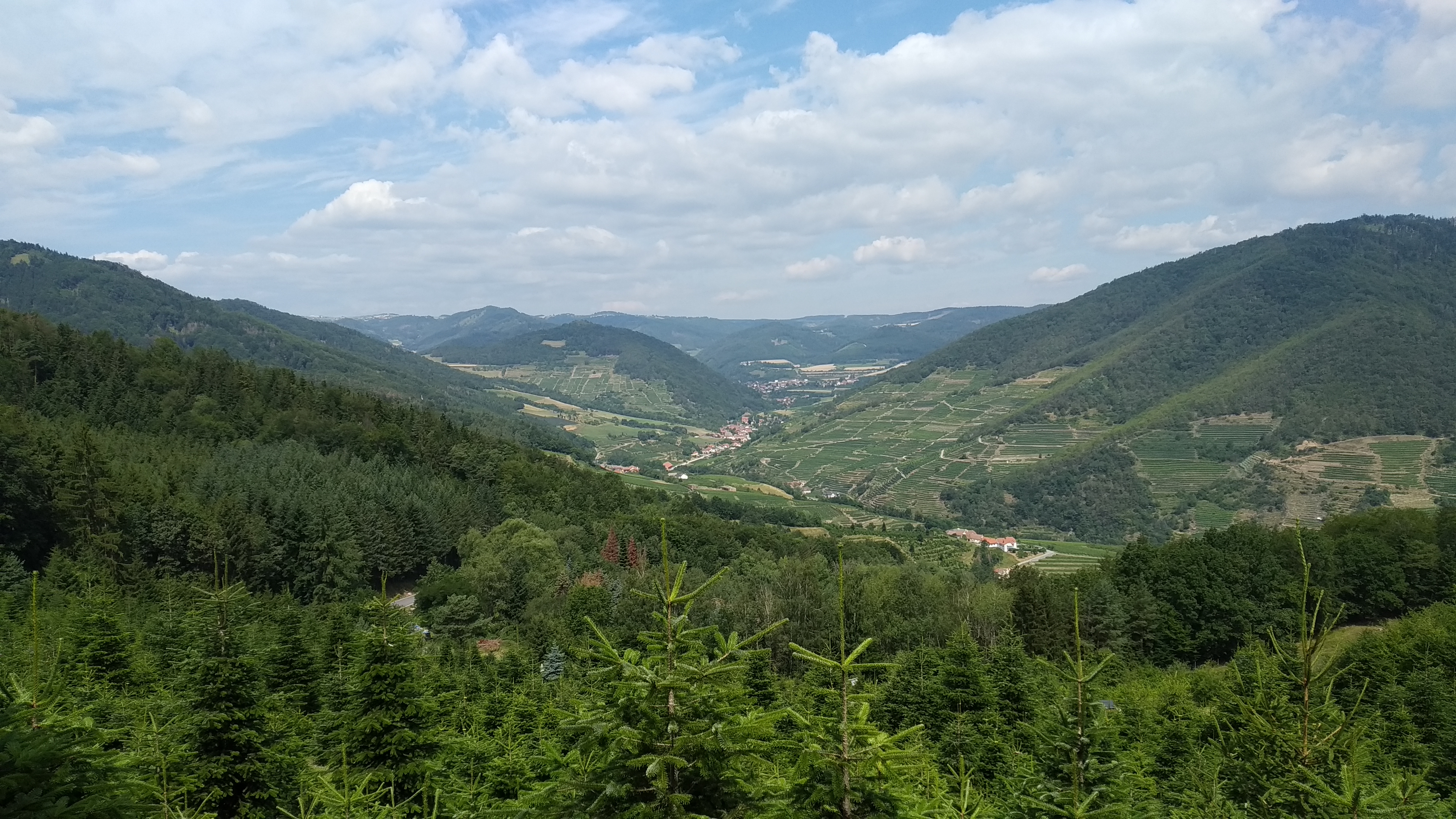 Bei Straßenkilometer 3.0 ergibt sich ein schöner Ausblick in den Spitzer Graben.
