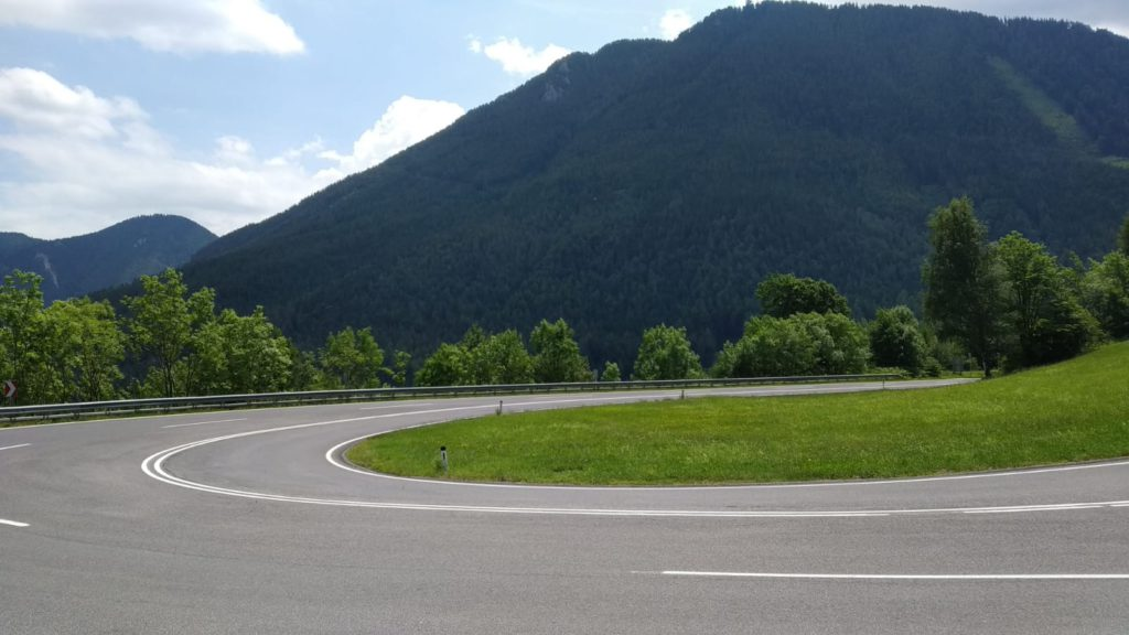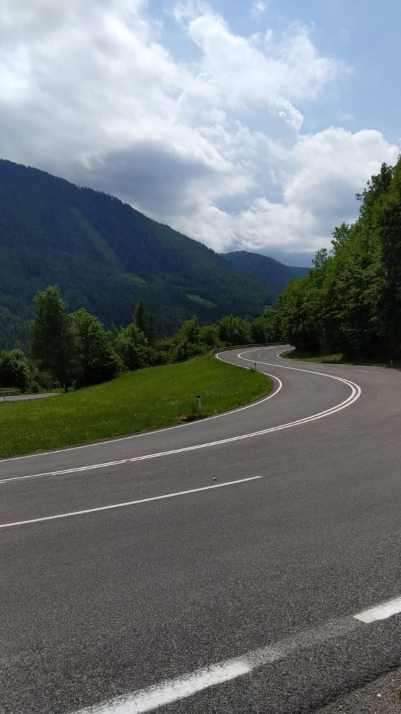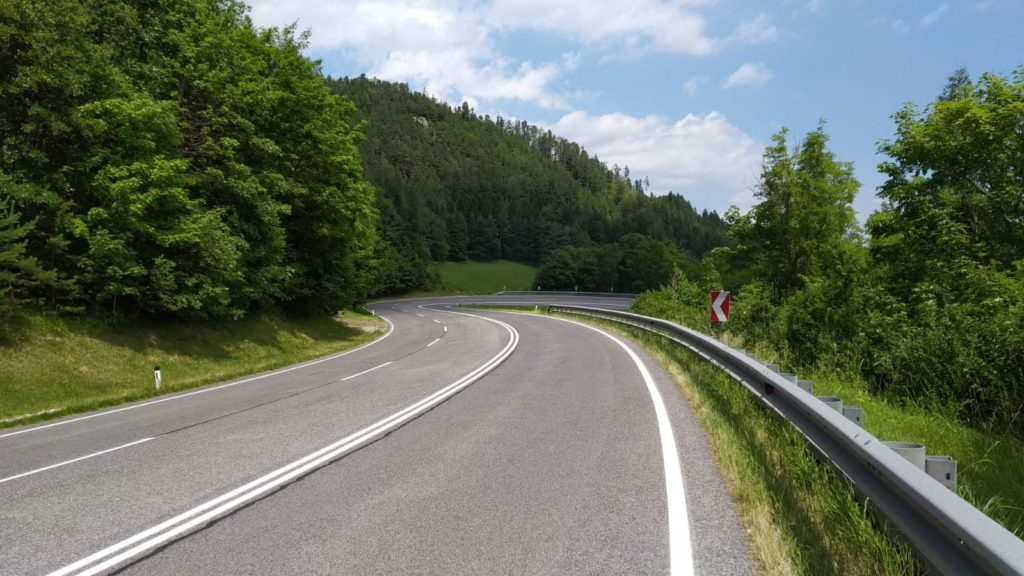 Von Maria Schutz in sanften Kehren zur Passhöhe und Hochstraße.