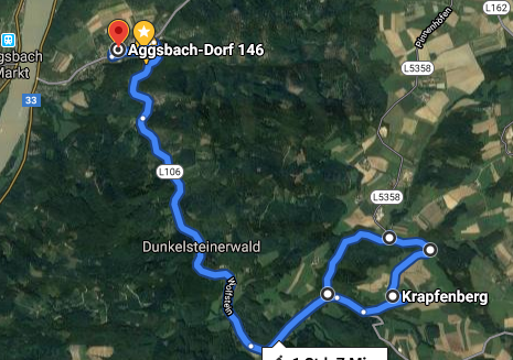 | 30. Juni 2020 Krapfenberg im Dunkelsteinerwald... liegt im Dunkelsteinerwald, ganz in der Nähe; ist aber eine kleine Abendrunde wert ;-) Route: Von Aggsbach Dorf entlang dem Wolfsbach nach Kochholz und zur Abzweigung nach Lottersberg. Kurz bei einer Steigung von etwa 20 % zur Abzweigung nach Krapfenberg und jetzt relativ gemütlich in den Ort hinauf.