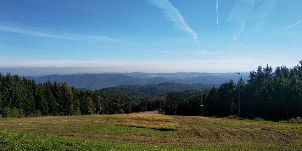 Nach der Auffahrt von Gut am Steg, und nach etwa 1 km Richtung Jauerlinggipfel, bietet sich oberhalb der Schipiste ein schönes Ausblick ins Alpenvorland (einige Fotos).
