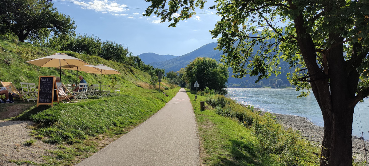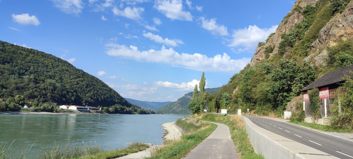 Am Donauradweg bei Aggsbach Dorf, Blick donauabwärts.