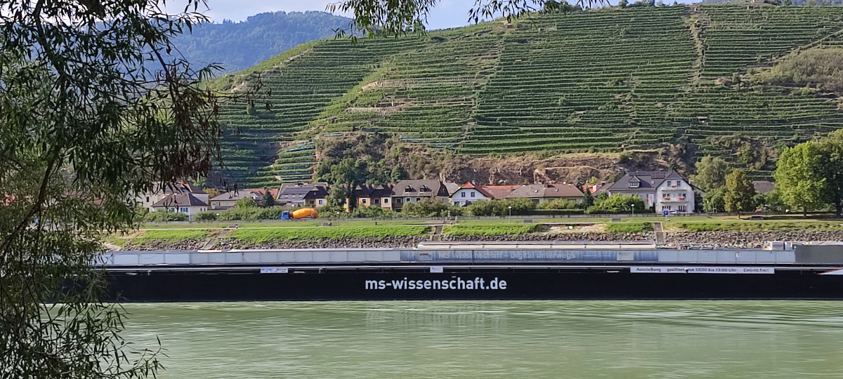 Rast bei der Rollfähre Arnsdorf – Spitz, Blick donauaufwärts.Kochholz – Kicking – Gansbach (29. September 2023)