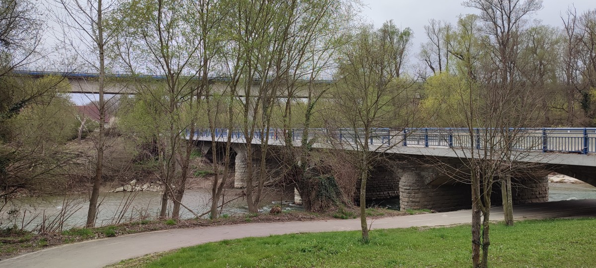 Der Donauradweg verläuft unter der Pielachbrücke auf die andere Straßenseite der B33.