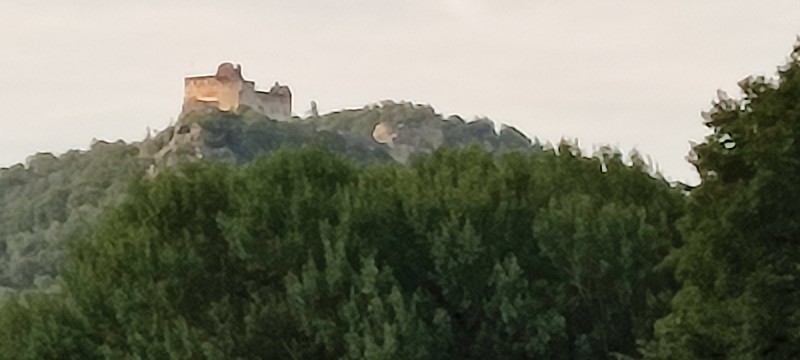 Abendlicher Blick vom Donauradweg zur Ruine Aggstein.