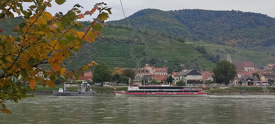 Das Linienschiff "Mozart" vor der Anlegestelle in Spitz ... vom Radweg am rechten Donauufer aus gesehen ;-)